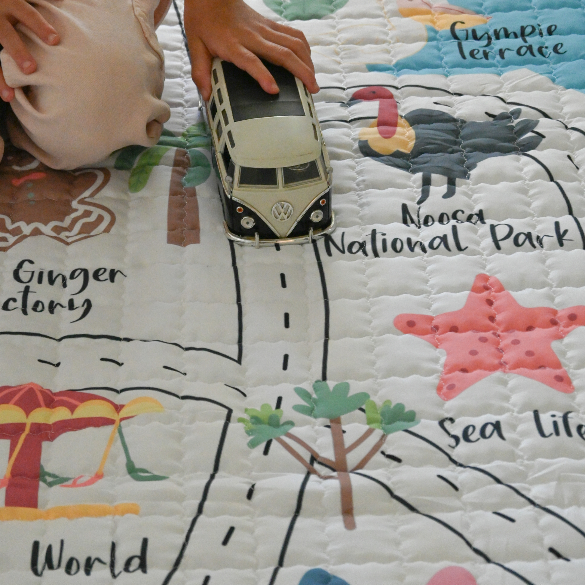 Ignite your child's imagination and curiosity with our beautifully designed Sunshine Coast, Australia Play Map. Featuring iconic landmarks and imagery inspired by our home region, this play mat is more than just a soft play space—it’s an interactive journey around one of Australia's favourite family holiday destination.