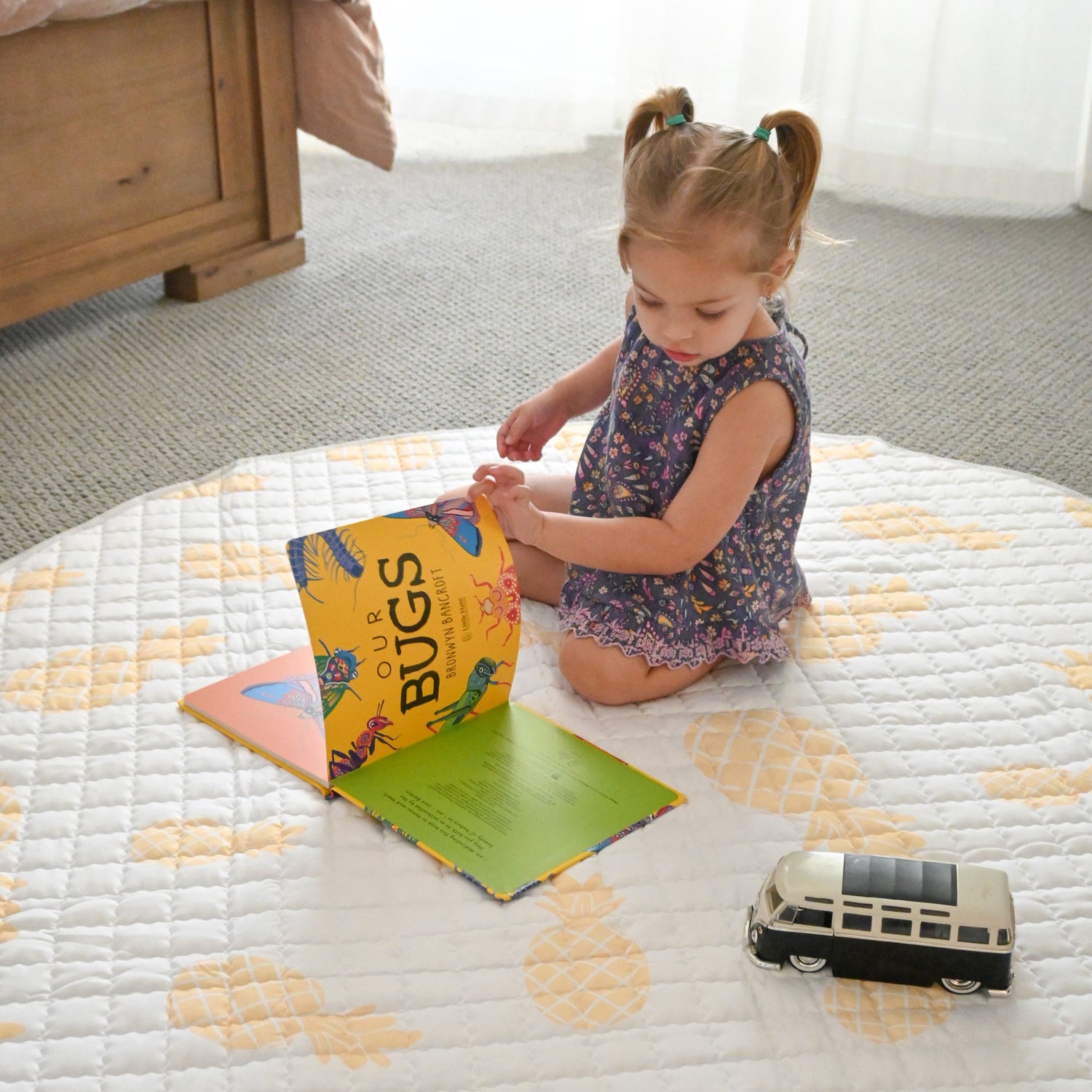 - Reversible Design for Versatile Use: The flip side of this play map showcases a soft-yellow, pineapple pattern, ideal for quiet moments like tummy time, reading, blocks or puzzles.